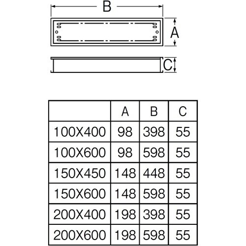 A(mm):98 | C(mm):55 | B(mm):398 | 材質・仕上げ:SUS304 | 単位:1個