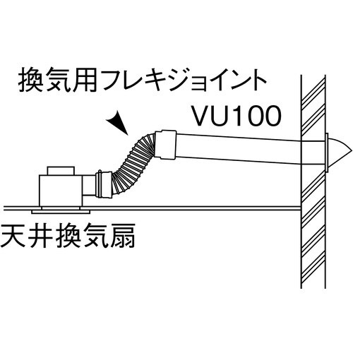 伸縮性・固定性があるので長さ調節や天井換気扇の接続に必要な勾配が楽に取れます。曲げ角度90度。 |