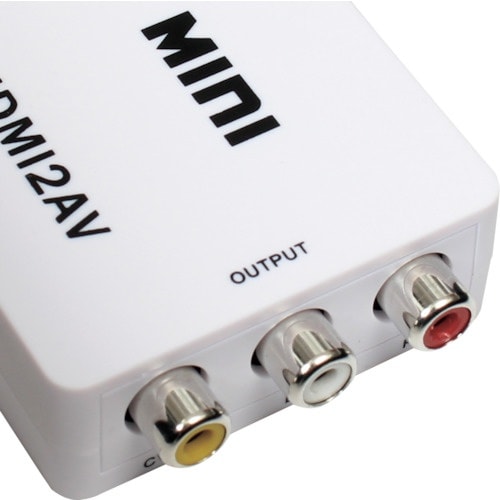 | 注意事項 | ※ビデオ設定は「NTSC」を選択して下さい。HDMI入力をAV(コンポジット)/赤・白音声に変換できるミニコンバーターです。電力不足時の補助電源としてminiUSB給電にも対応(miniUSBケーブルが付属) |