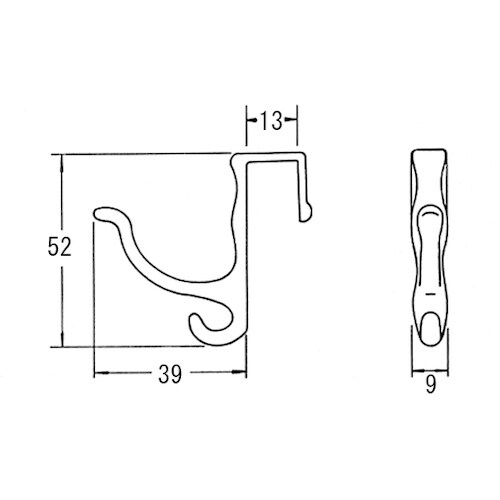 幅(mm):9 | 奥行(mm):39 | 高さ(mm):52 | 吊下荷重(kgf):3 | 色:ニッケル | 表面処理:ニッケルメッキ | 本体:…