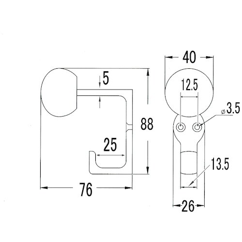 幅(mm):40 | 奥行(mm):76 | 高さ(mm):88 | 吊下荷重(kgf):5 | 色:黒 | 表面処理:焼付塗装 | 本体:亜鉛合金 …