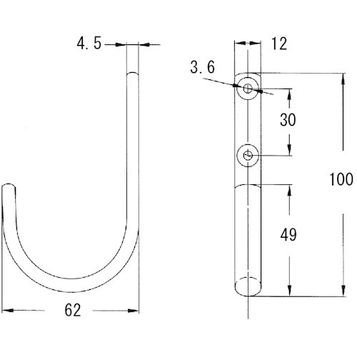幅(mm):12 | 奥行(mm):62 | 高さ(mm):100 | 吊下荷重(kgf):10 | 色:鏡面研磨 | 表面処理:鏡面研磨 | 材質・…