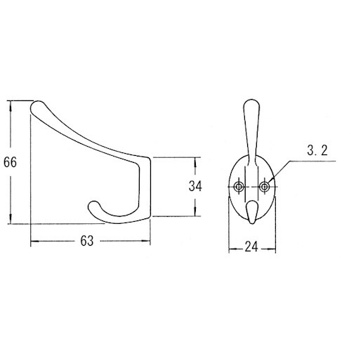 幅(mm):24 | 奥行(mm):63 | 高さ(mm):66 | 吊下荷重(kgf):4 | 色:アイボリー | 表面処理:焼付塗装 | 本体:亜…