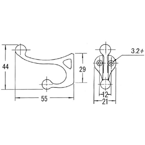 幅(mm):21 | 奥行(mm):55 | 高さ(mm):44 | 吊下荷重(kgf):3 | 色:茶 | 表面処理:焼付塗装 | 本体:亜鉛合金 …