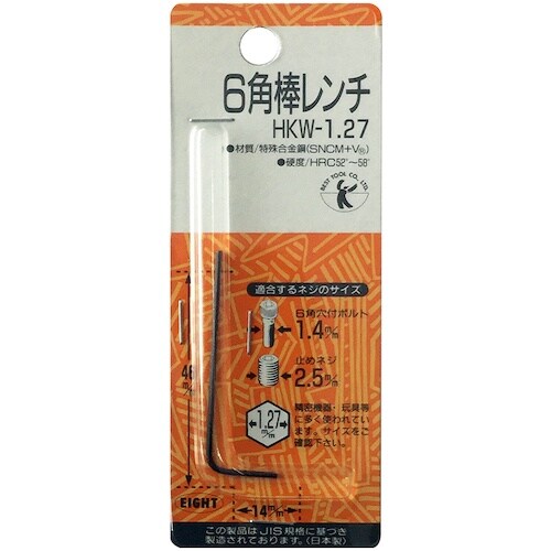 日本唯一の最高級6角棒専門メーカーEIGHTが独自に開発した特殊合金鋼”SNCM+V”を採用した、6角棒レンチシリーズです。袋ナットや六角穴付ボルトの締め緩めに。 |