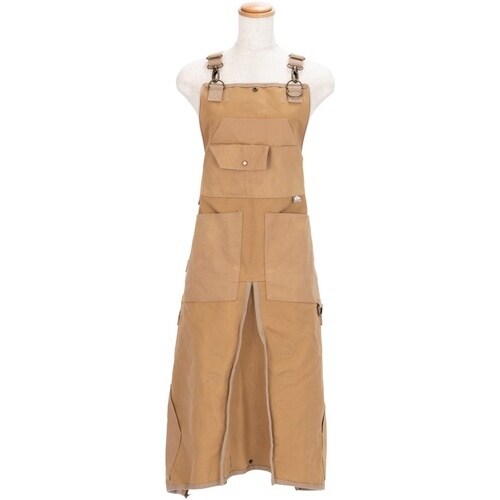 膝まで隠れるエプロン、半分に折って動きやすいベストタイプにもなります。 |