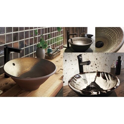 作陶技術の粋をこらして完成した信楽焼の洗面鉢「利楽」です。排水トラップはH700−3XW−32をお使い下さい。