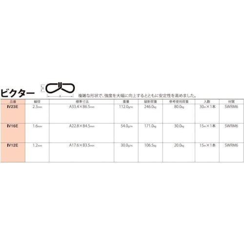 使用荷重(kN):0.2 | A(mm):17.6 | B(mm):3.5 | 線径(mm):1.2 | その他仕様:ファインカラーチェン15m金 |…