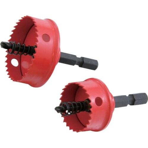 極薄バイメタル刃の使用により切削抵抗を抑え電気ドリル、インパクトドライバーでの切削に最適です。センタードリルにカス抜き用スプリングを装着しているため、切りカスの除去作業が軽減されます。