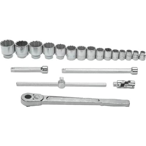 差込角19.0mmのラチェット・ソケットセットです。専用工具箱入りです。 |