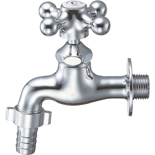 散水ホース接続用のカップリングがついている水栓。デザイン性、操作性にも優れたハンドル。 |