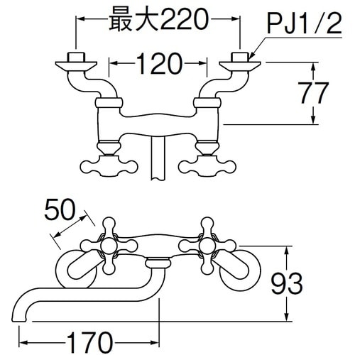 呼び径(mm):13(PJ1・2) | 取付穴径(mm):120ー220 | タイプ:寒冷地用 | 材質・仕上げ:青銅 | 単位:1個