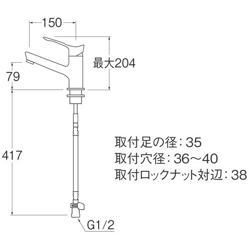 呼び径(mm):13 | 取付穴径(mm):36ー40 | タイプ:寒冷地用 | 泡沫吐水、取付ロックナット対辺:38 | 材質・仕上げ:黄銅 | 単…