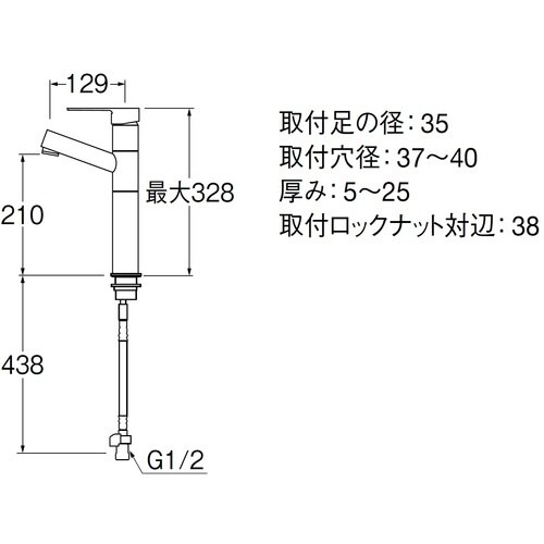 呼び径(mm):13 | 取付穴径(mm):37ー40 | タイプ:一般地用 | 泡沫吐水、取付ロックナット対辺:38 | 材質・仕上げ:黄銅 | 単…