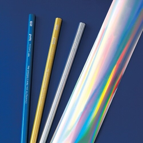 トレンドに合わせた軸色に光り輝くホログラム箔を載せたかきかた鉛筆です。