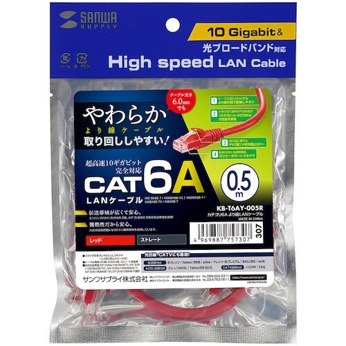 サンワサプライ SANWA カテゴリ6Aより線LANケーブル KBT6AY005R 1本 A050-3108