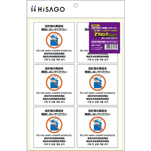 HISAGO ステッカー はがせる!ピタロングステッカー会計前の商品を開封しないでください A4 6面 KLS092 1Pk(1枚)