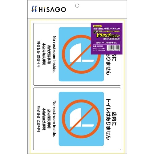 ヒサゴ HISAGO ステッカー はがせる!ピタロングステッカー店内にトイレはありません A4 2面 KLS099 1Pk(1枚) A050-4631