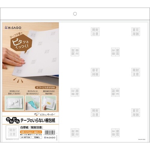 HISAGO テープのいらない梱包紙 白厚紙 開封注意 360×297mm KP104 1Pk(10枚)