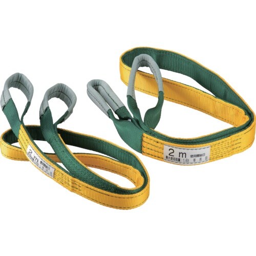 緑・黄の2色づかいで、使用時のねじれが一目で分かります。伸縮性が少なく、重量物でも安定した作業ができます。超強靭柔軟性ポリエステル繊維を使用しています。玉掛け作業等に。