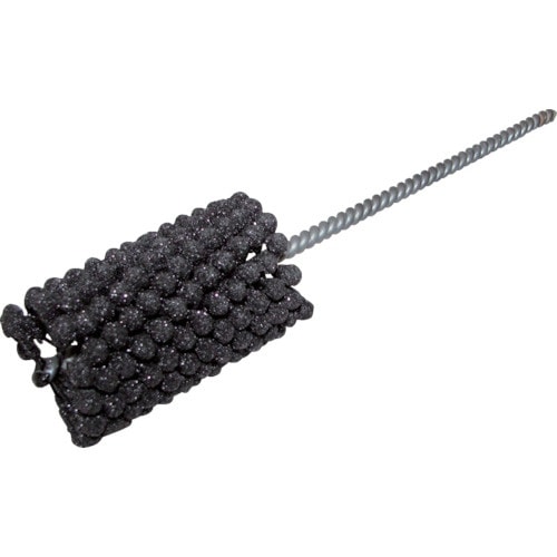 砥石をコーティングした玉状砥材が、樹脂軸によりしなり、凸凹の内面にもフィットします。円筒内部のバリ取り、内面研磨に最適です。