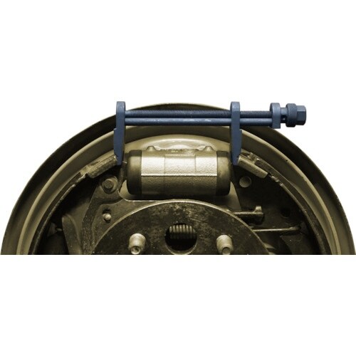 リターンスプリングを外さずにブレーキシューを広げて保持できます。ホイールシリンダーの脱着に。 |