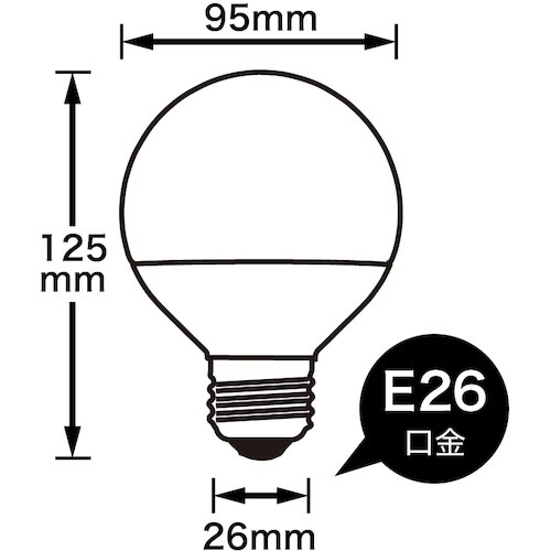 明るさ(lm):1460 | 光源色:電球測 | 外径(mm):95 | 全長(mm):125 | 消費電力(W):12.5 | 口金:E26 | 定…