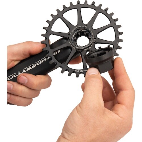 Specialized、Cannondale、 FSA のダイレクトマウントチェーンリング用ロックリング着脱工具。 |
