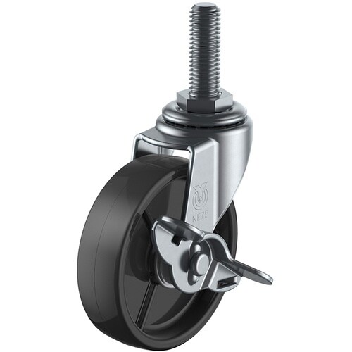 ユーエイ ねじ込み式 自在 キャスター 黒ナイロン 車輪径75mm ストッパー付き Lタイプ LT−S型 ネジ寸法UNF1/2×14山数20 LT75BNSUNF1214 1個