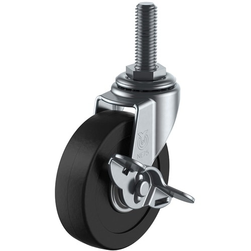 ユーエイ ねじ込み式 自在 キャスター 導電ゴム 車輪径75mm ストッパー付き Lタイプ LT−S型 ネジ寸法UNF1/2×14山数20 LT75RHESUNF1214 1個