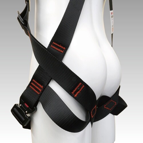 腰のベルト交差部が可動し、身体の動きにフィットします。体格に合わせて胸前・腰・ももの3か所のベルトで調節可能です。骨盤と足回りにベルトを配置しています。電気工事、その他高所作業用。 |