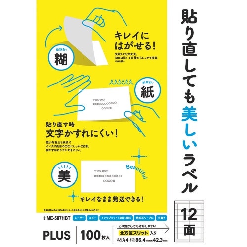 PLUS 99047)貼り直しても美しいラベル12面ME−507HBT ME507HBT 1冊