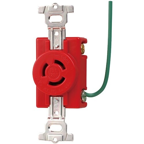 接地2P 15A 引掛埋込コンセント(接地リード線付)(赤)