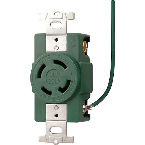 接地 2P 30A 引掛埋込コンセント(接地リード線付)(緑)