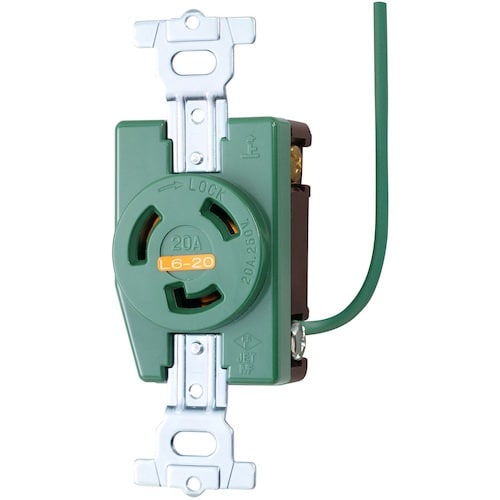 接地2P 20A 引掛埋込コンセント(接地リード線付)(緑)