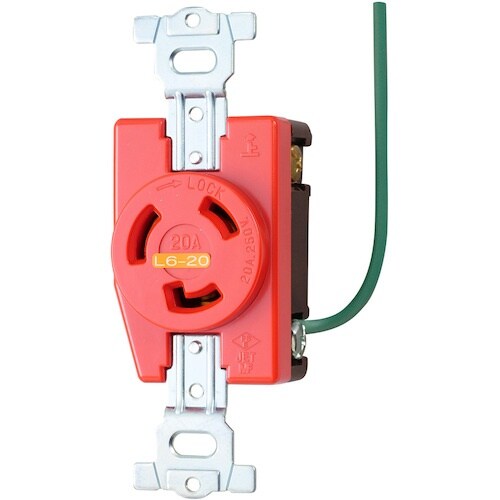 接地2P 20A 引掛埋込コンセント(接地リード線付)(赤)