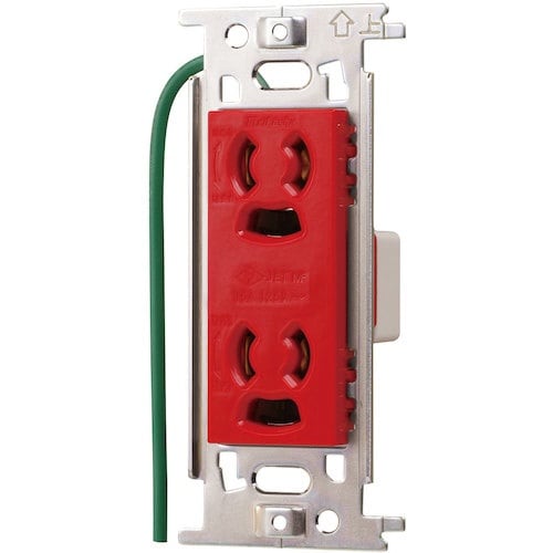 設備用ML抜け止め接地ダブルコンセント(接地リード線付)(赤)