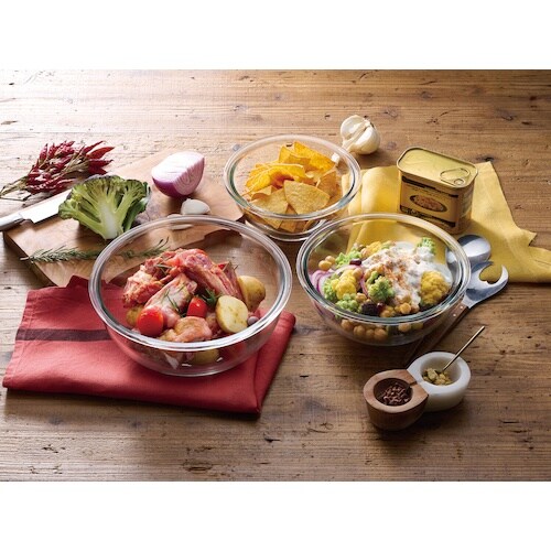 電子レンジやオーブンで使用できる耐熱ガラスボウルです。小鉢としても使えるサイズです。フタ付きです。作り置きの保存、スイーツづくり、作ってそのままお皿の代わりとして使用するなど様々な用途で活躍します。 |