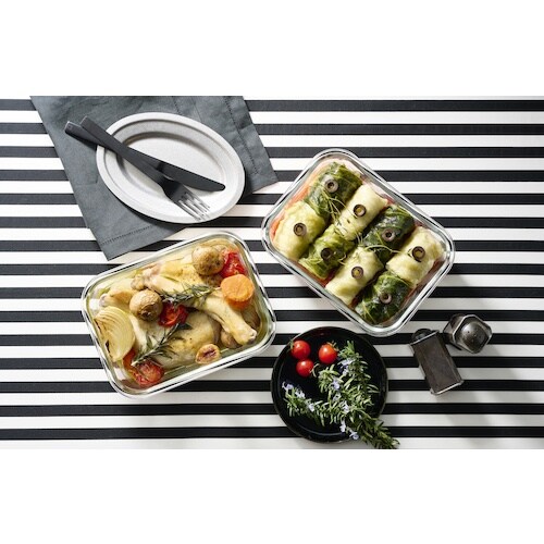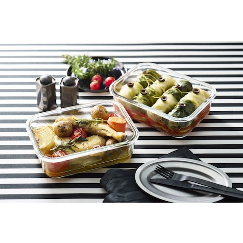 電子レンジやオーブンで使用できる耐熱ガラス容器です。作り置きの保存やそのまま食卓へお皿代わりに並べたり、スイーツ作りなど様々な用途で活躍します。食品の保存に。 |