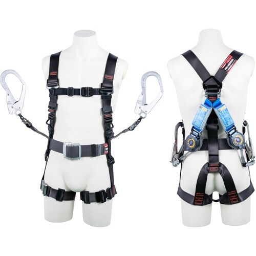 TSUYORON 飛燕ハーネス 胴ベルト付き ツインランヤード付き ロック機構付き巻取式SRリトラ ダークグレー LLサイズ 130KG対応型 TH5062TR93SVOTDGLL13 1本