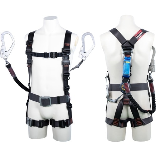 TSUYORON 飛燕ハーネス 胴ベルト付き ダブルランヤード付き ロック機構付き巻取式SRリトラ+伸縮式ノビロン(BK) ダークグレー LLサイズ 130KG対応型