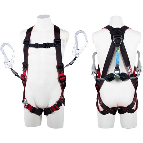TSUYORON レヴォハーネス ツインランヤード付き ロック機構付き巻取式コルトリトラ 黒・赤 Sサイズ TH5082CR93SVOTBKRBKS 1本
