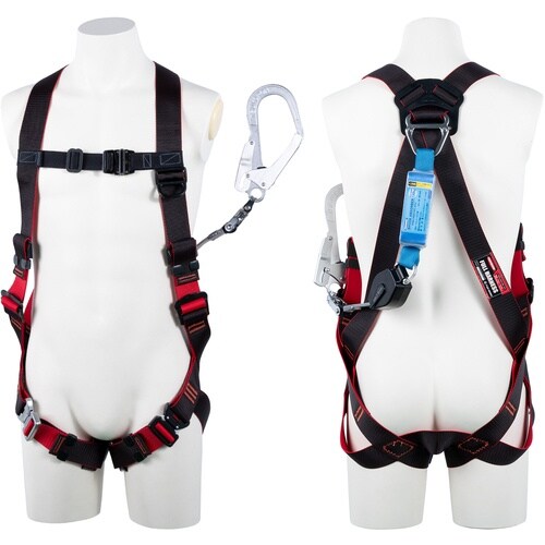 TSUYORON レヴォハーネス シングルランヤード付き ロック機構付き巻取式コルトリトラ 黒・赤 LLサイズ 130KG対応型 TH508CR93SVOTBKRBKLL 1本