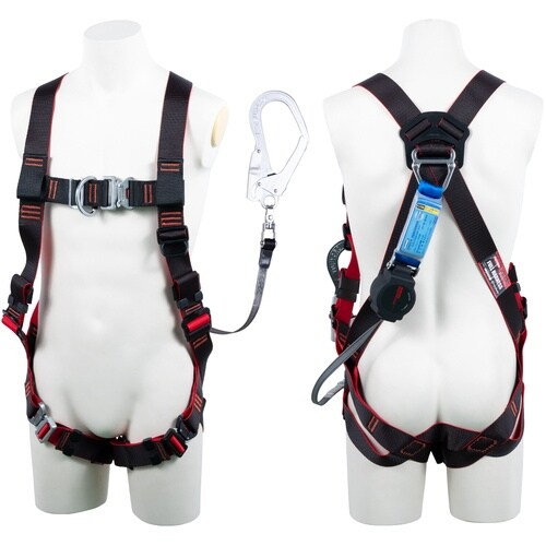 TSUYORON レヴォハーネス シングルランヤード付き ロック機構付き巻取式ワン・ハンドリトラ 黒・赤 LLサイズ 130KG対応型 胸D環付き TH508OTOH93SVOTBKRLL 1本
