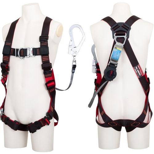 TSUYORON レヴォハーネス シングルランヤード付き ロック機構付き巻取式ワン・ハンドリトラ 黒・赤 Lサイズ 胸D付き TH508OTOH93SVOTBKRLR 1本