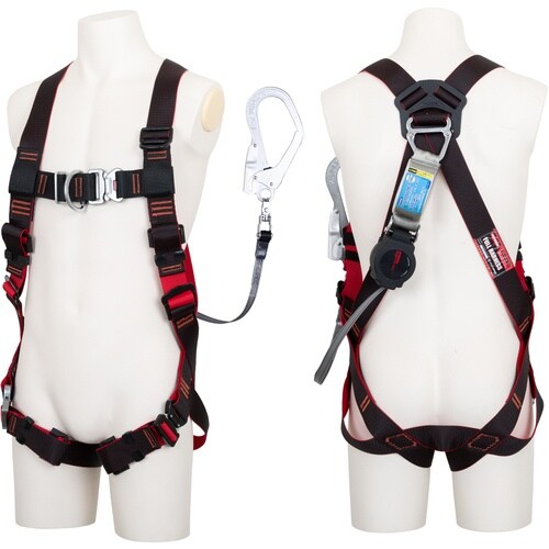 TSUYORON レヴォハーネス シングルランヤード付き ロック機構付き巻取式ワン・ハンドリトラ 黒・赤 Sサイズ 胸D付き TH508OTOH93SVOTBKRSR 1本