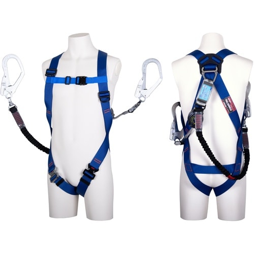 TSUYORON ライトハーネス ダブルランヤード付き ロック機構付き巻取式SRリトラ+ノビロン(BK) 青 Sサイズ TH510TRNV93SVOTBL4S2 1本