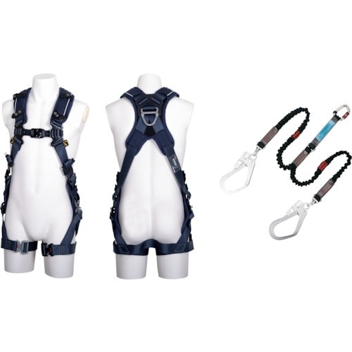 TSUYORON ZERO−Gハーネス 腿水平型 紺 MG Lサイズ+伸縮式ノビロン(BK)ツインランヤード セット TH520H2NV93SVOTBLLMG 1本