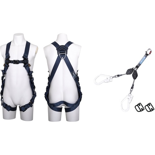 TSUYORON ZERO−Gハーネス 腿V型 紺 SG Mサイズ+ロック機構付き巻取式コルトリトラツインランヤード セット TH520V2CR93SVOTBLBKM 1本