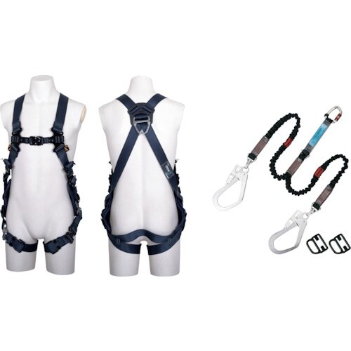 TSUYORON ZERO−Gハーネス 腿V型 紺 SG Mサイズ+伸縮式ノビロン(BK)ツインランヤード セット TH520V2NV93SVOTBLM2R 1本